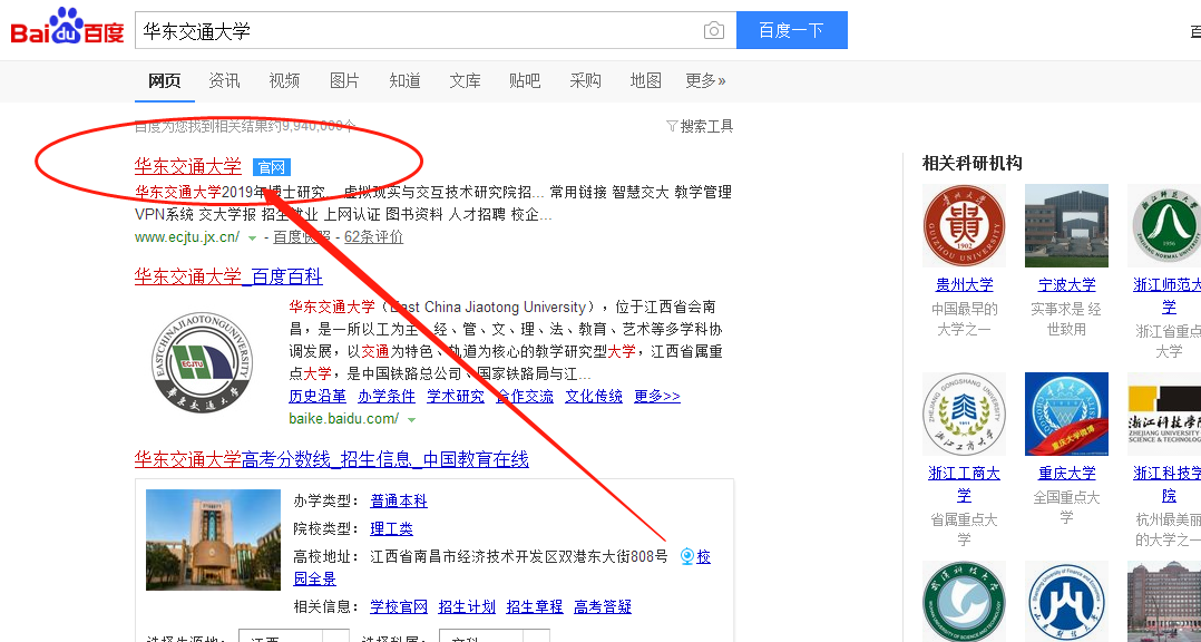 第一步,打开百度搜索在百度搜索框中搜索华东交通大学