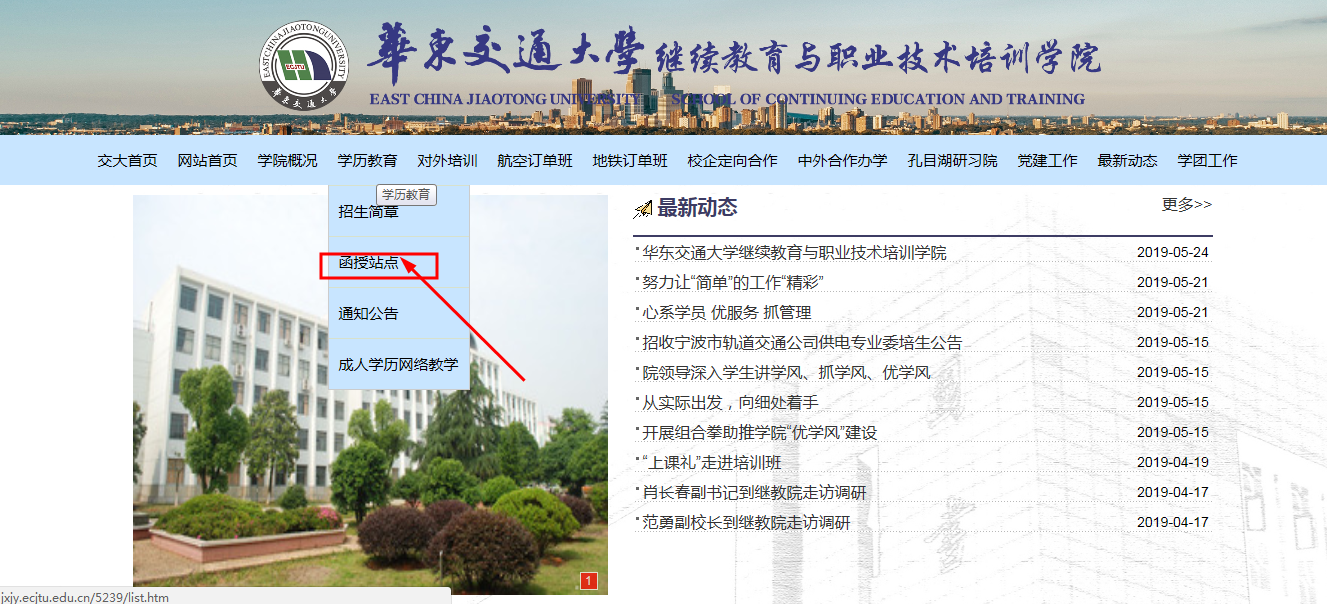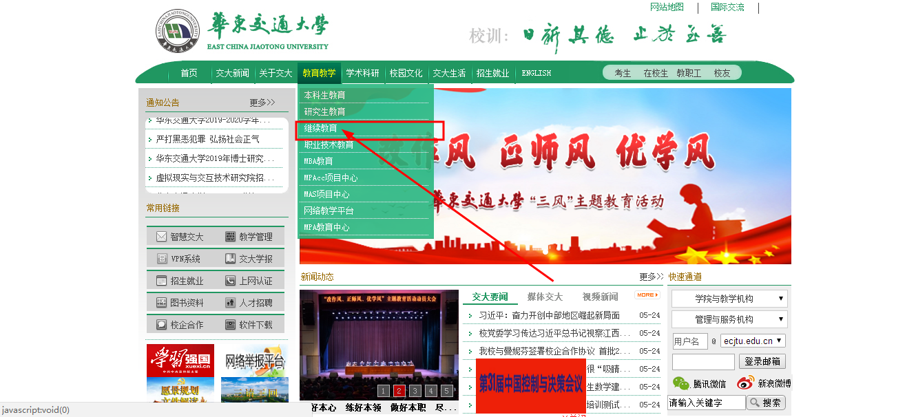 第二步,点开华东交通大学官网,在教育教学栏目上找到继续教育点开